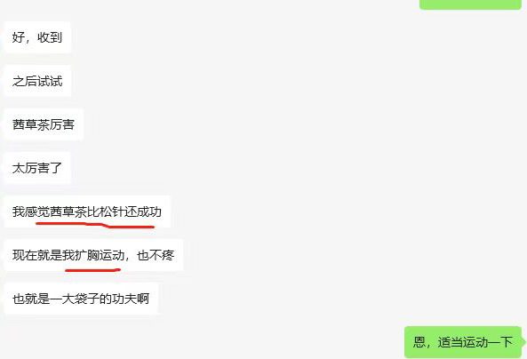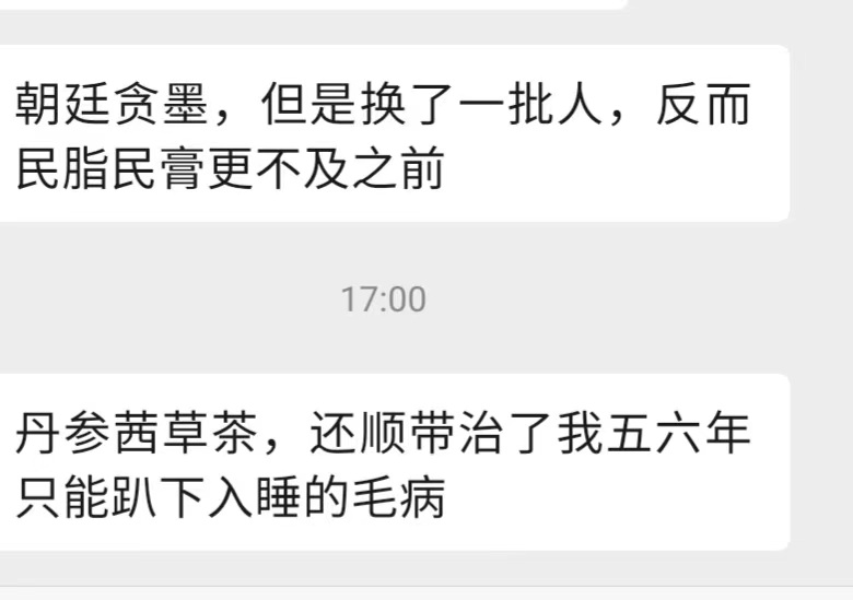 评价:五安茜草丹参茶研发成功,比五安清毒剂还厉害,顺带治好了多年来趴着睡觉的毛病。