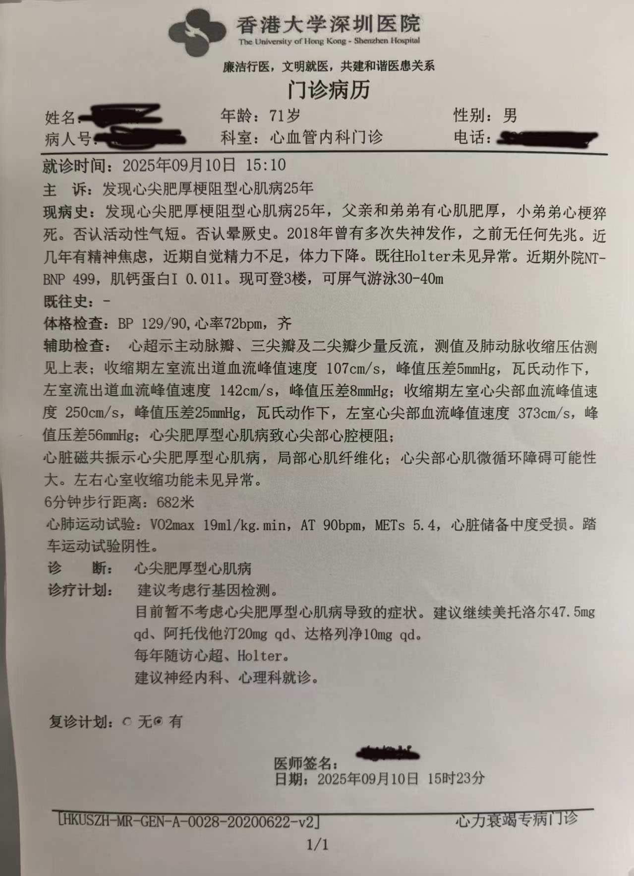 2025年10月24日,做了一次回访,反应状态很好,大脑无症状!