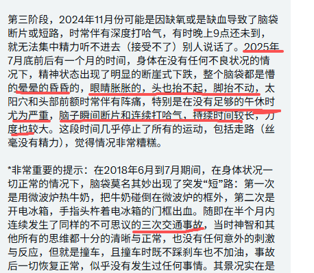 71岁老人,接种新冠疫苗3针,心肌病25年,心尖肥大,主动脉返流。头胀,眼胀,头抬不起来,脚也抬不动,头晕,头疼,脑子断片。经过《香港大学附属医院》也未能改善。这是脑梗的前兆,幸亏及早使用五安疫苗解毒剂!这是网友,买给亲友,用了36天效果反馈。
