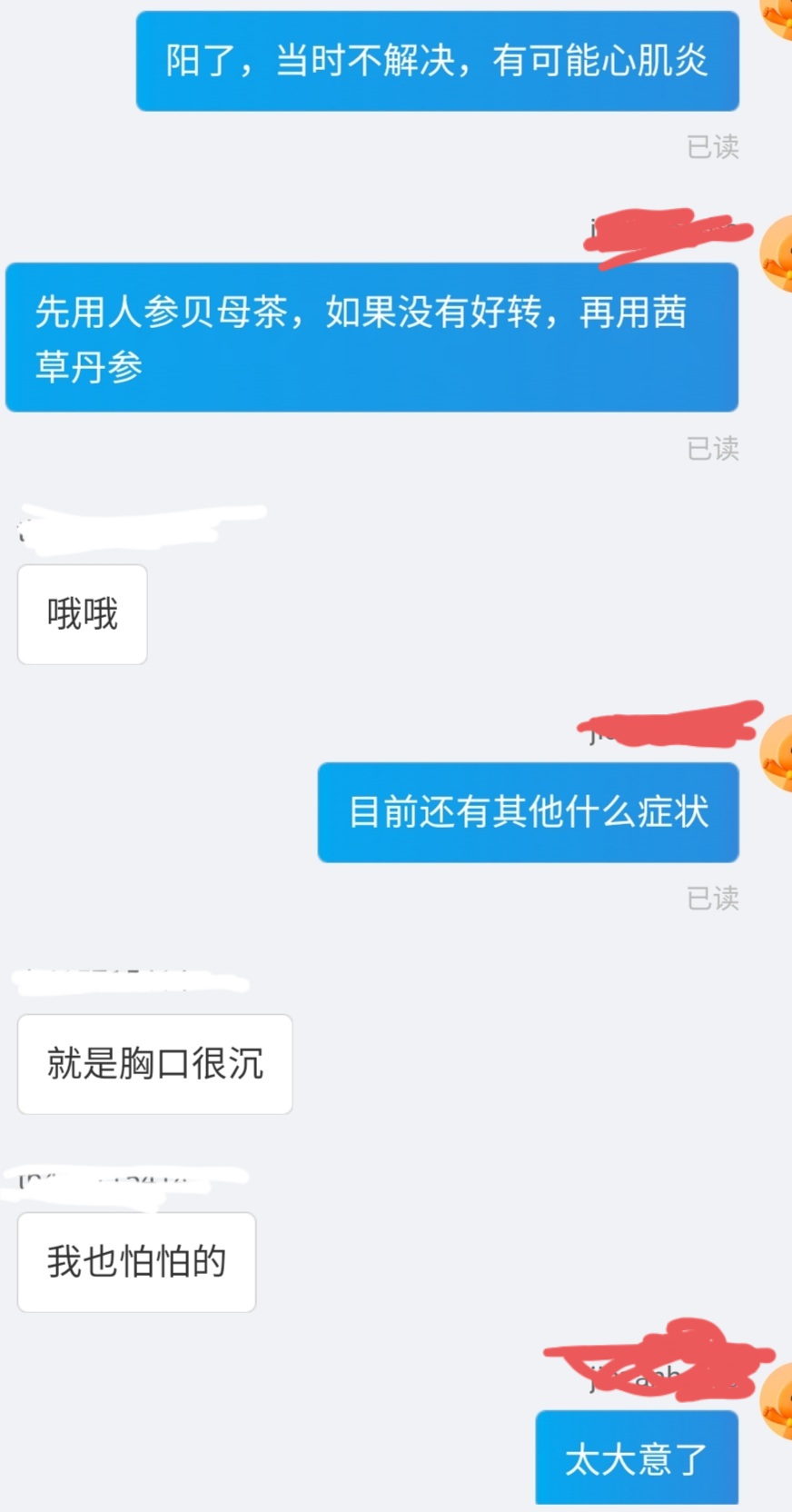 10、吃了其他中医开的药无效后,订购人参贝母茶+五安清毒剂后,恢复!